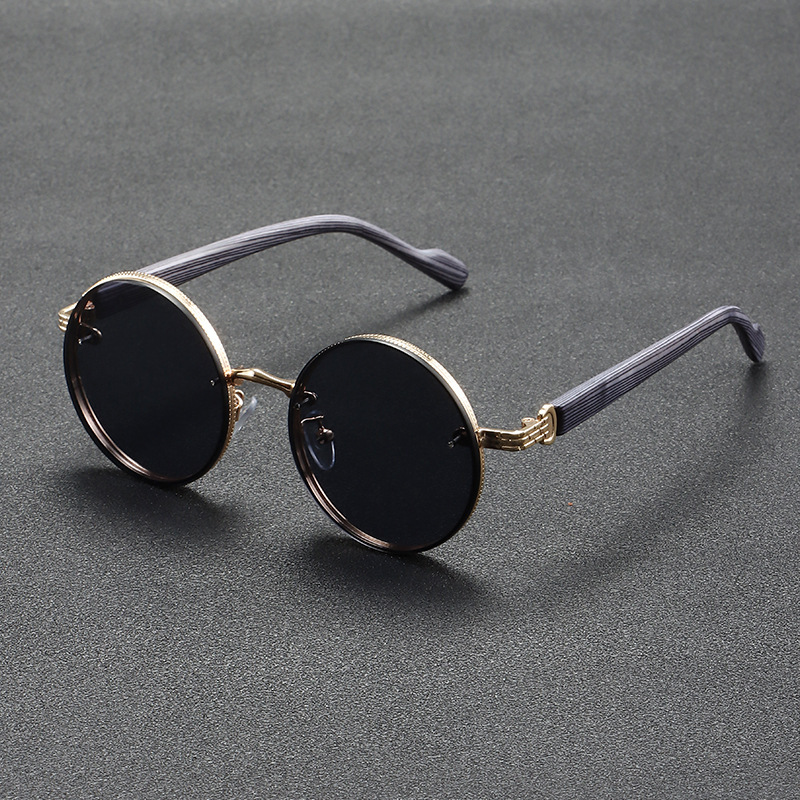 Chic And Adaptable Round-Frame Glasses with a Wood-Grain Metal End - Polycarbonate Lenses, Featuring a Minimalist Retro Style - Ideal for Everyday Wear, Urban Fashion, And Gifting - Comes with a Protective Case, Perfect for Gatherings, School